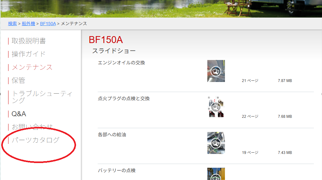 ホンダ船外機の部品番号はホンダのサイトで調べることが出来ます
