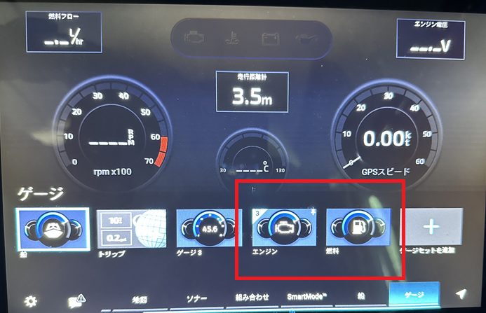 船外機をONすると下記の用に表示されます